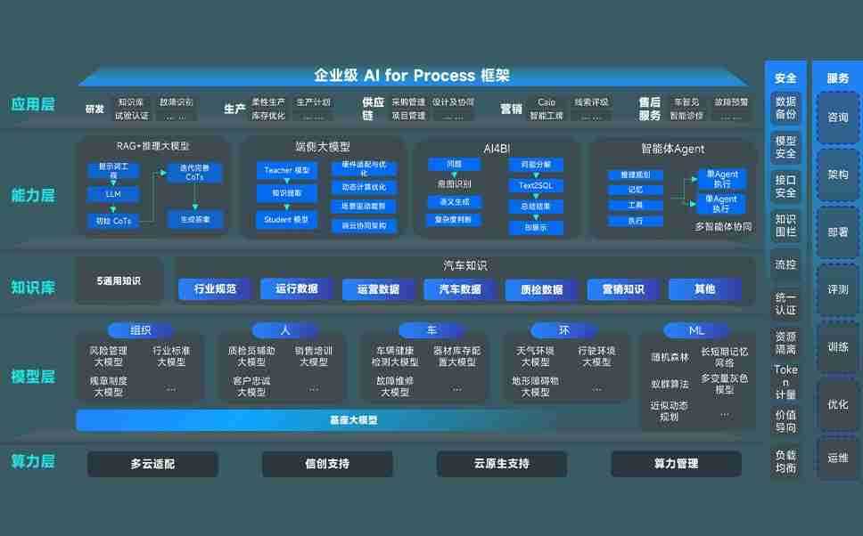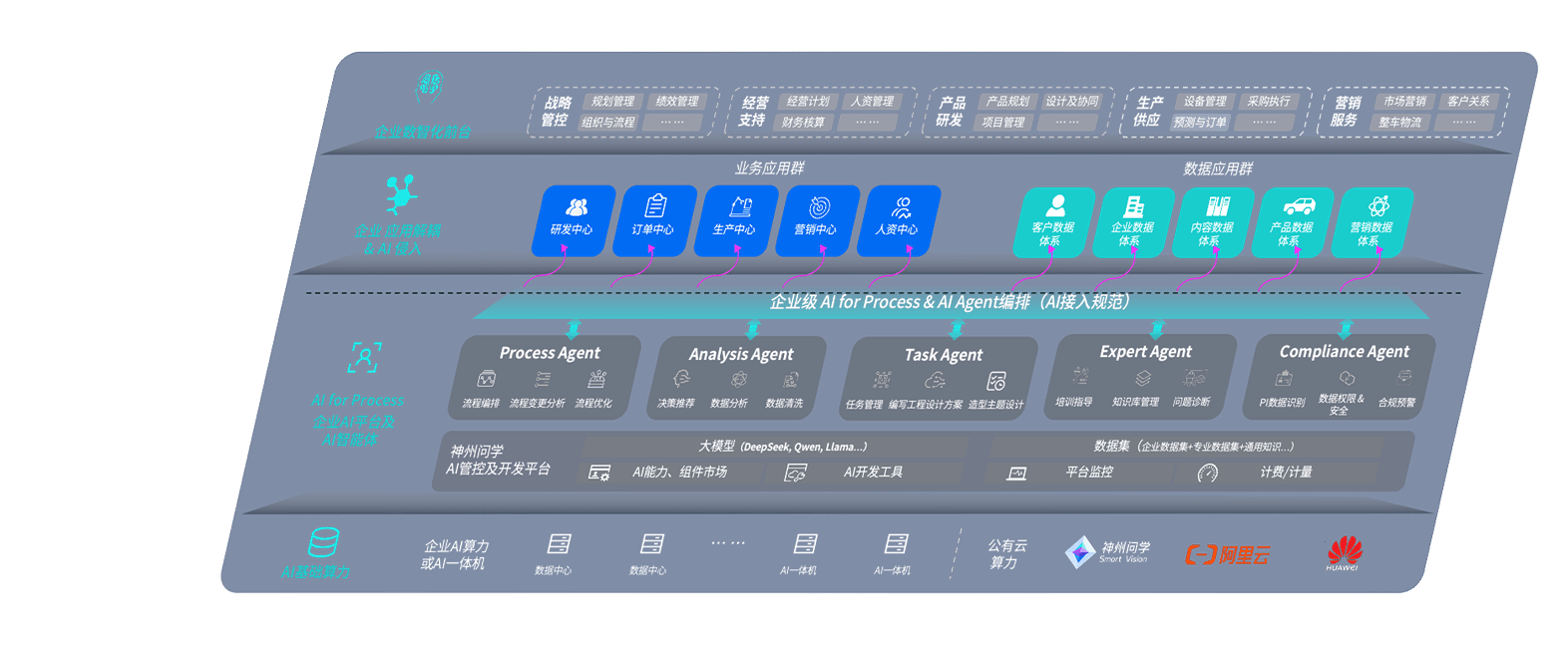 NG娱乐问学智车解决方案是一套基于AI技术的汽车行业智能化系统,,,覆盖从底层算力到顶层AI应用的全栈方案。。方案由算力层、、、模型层和应用层组成:算力层,,,方案支持多种一体机配置,,具备云端灵活部署、、、多云适配以及动态优化计算资源的能力;模型层,,,NG娱乐问学平台版提供了企业级AI应用一站式构建与管理平台,,,支持基于后训练强化技术的汽车企业专属模型的训练、、评测和运营;应用层,,NG娱乐问学DeepSeek版提供包括超级员工、、智能招采、、、、智能营销、、、智能客服、、AI for BI等一系列解决方案,,可助力汽车行业实现数字化转型,,,,让管理更智能、、响应更敏捷。。。